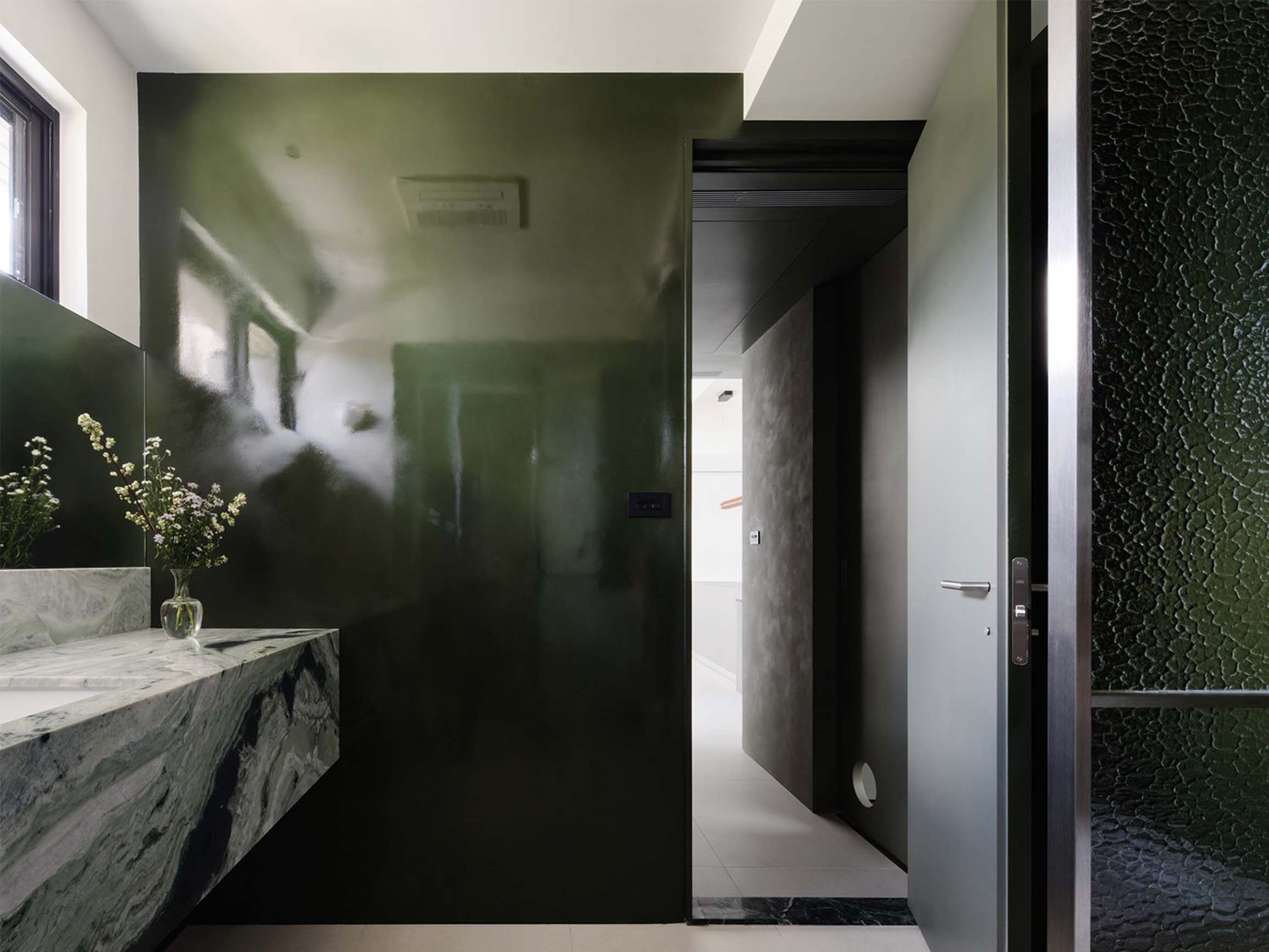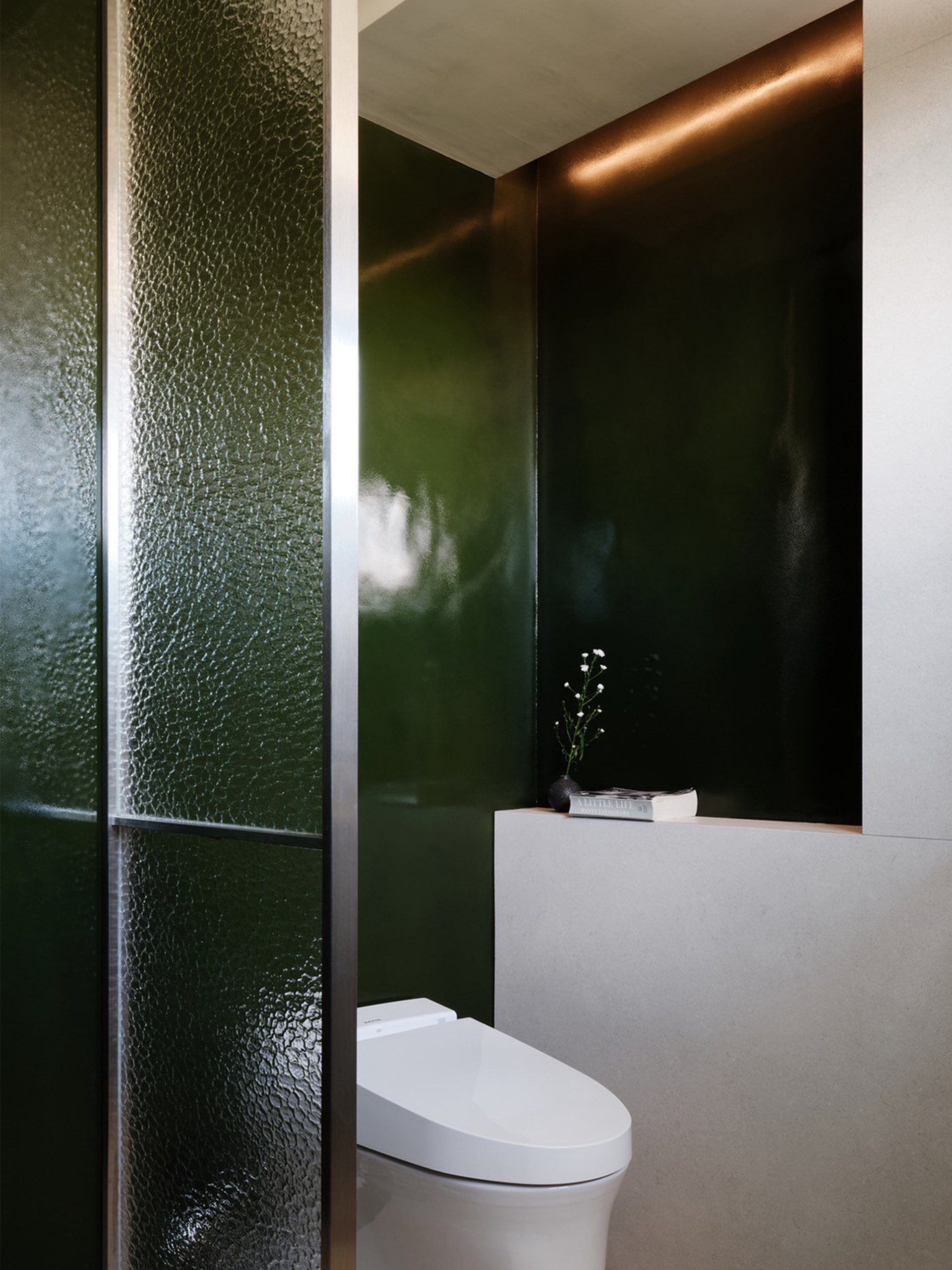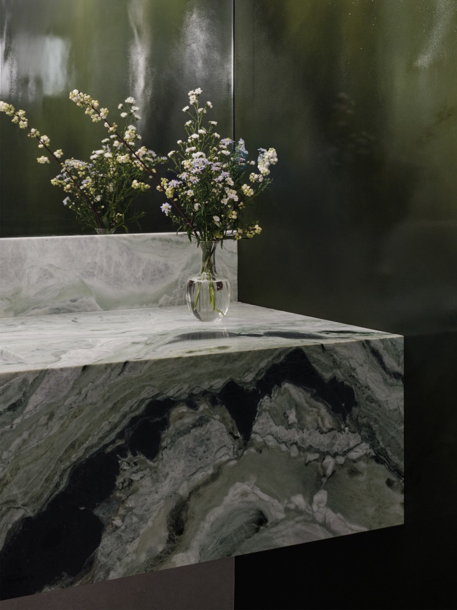 鏡面般平滑的觸感,與苔蘚綠所喚起的溫潤想像形成對比,
